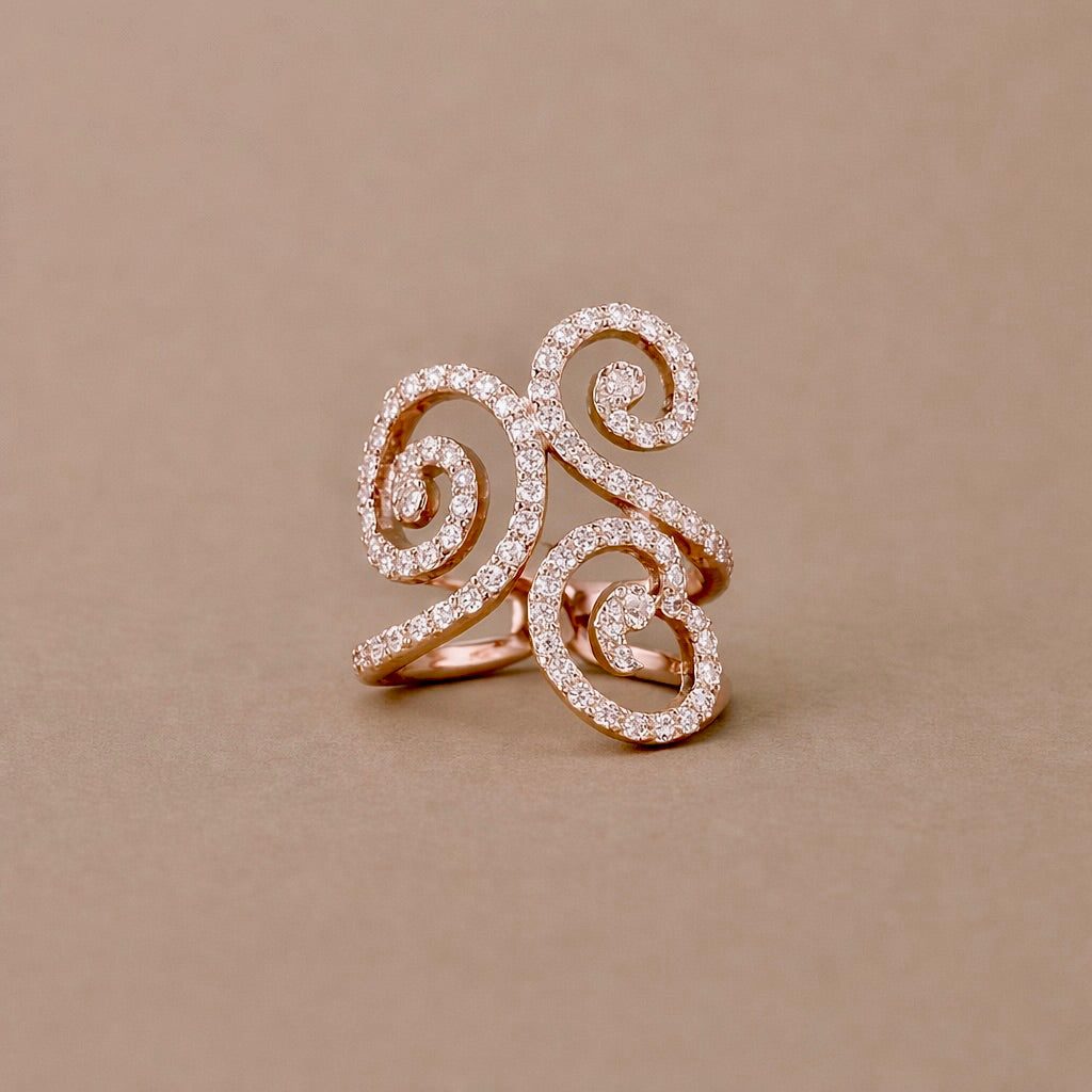 Anello riccioli in oro 9 kt con diamanti taglio brillante carati 0,88 colore G purezza Si