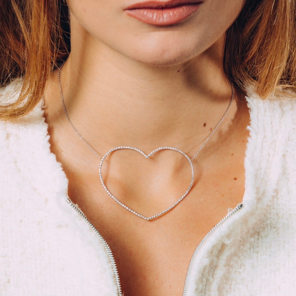 Ciondolo cuore in oro bianco 9kt con diamanti taglio brillante carati 1,30 colore G purezza SI